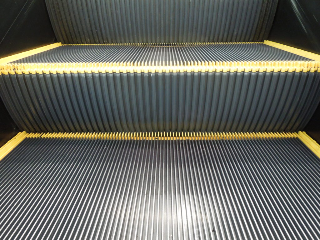 エスカレーター自体の色合いも暗いため、ホコリや汚れは目立ちませんが、清掃すると違いが出てきます。