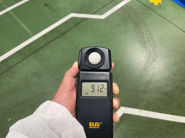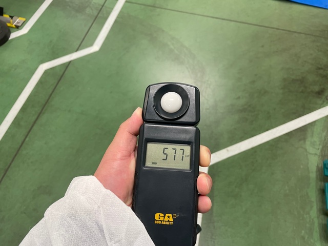 交換前の蛍光灯の明るさでは577ルクスであったところ、交換後のLED照明では912ルクスまであがりました。