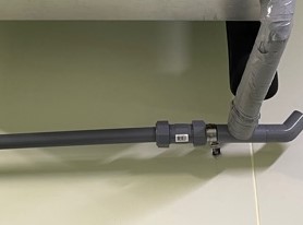 ドレン水の配管に関しては、今後のメンテナンスやに備えて、新たに配管接合部分にソケットを設けました。