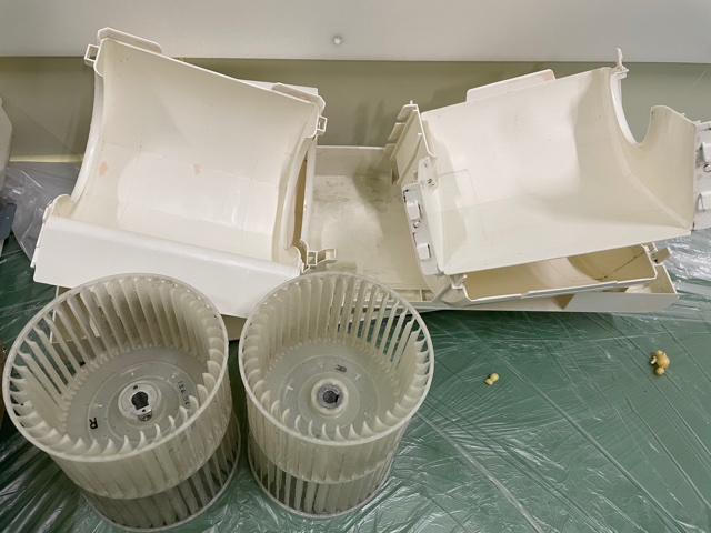 冷凍空調器本体の清掃は、通常の清掃と同様に、取り外し可能な部品をすべて取り外して洗浄します。