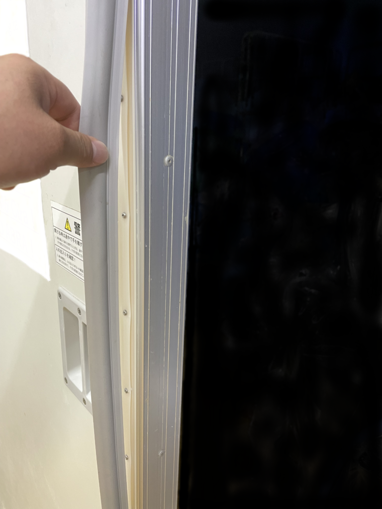 扉も頑丈なため、扉自体の自重も重く閉める時にクッション材を掴んで閉める方が多いとの事でした。