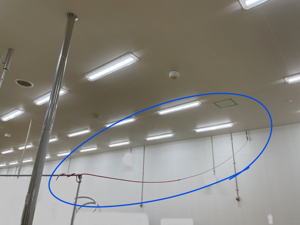 製造エリア内に於いて使用されているエアーチューブを天井裏に配管を通す工事です。
