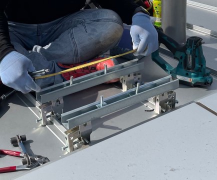 屋外で屋根上となると雨風も当たりやすい場所ですので防錆効果のあるステンレスですがさらにしっかりと錆止めスプレーを施工し
