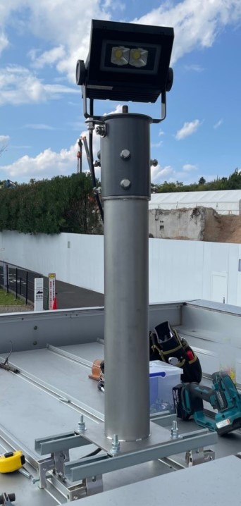 今回は、保有の投光器用にポールを製作し、設置を行いました。