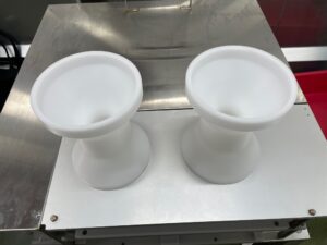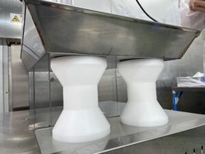 お客様のご要望に合わせて、ジュラコン丸棒から切削加工を実施しました。