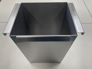 既製品の治具入れでは底面が樹脂の為ステンレス製に変更。洗浄後使用の為水抜きが必要。