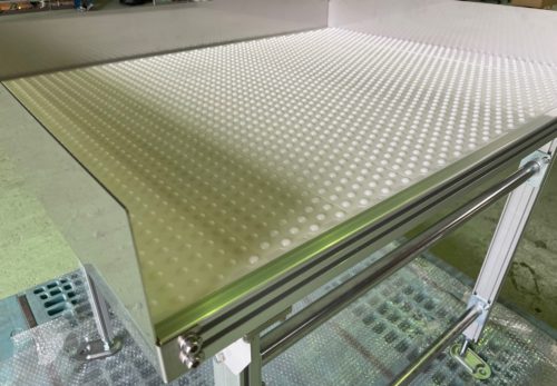 【導入事例】アルミフレーム製 樹脂ボールコンベヤ × SUS304専用ガイド製作